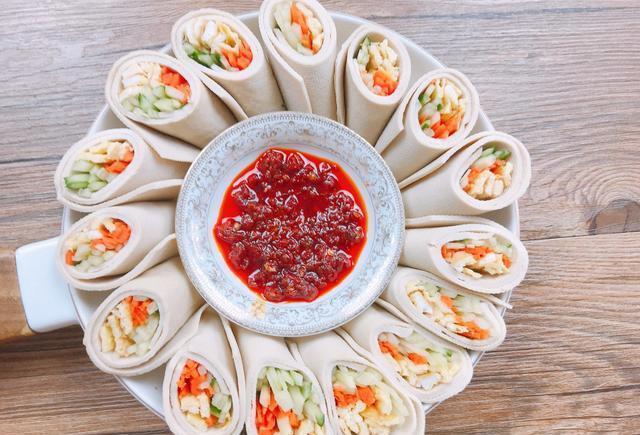 2、千張蔬菜卷中的蔬菜可以根據(jù)自己的喜好選擇和調(diào)整;