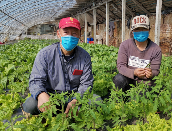 據(jù)農(nóng)產(chǎn)品配送了解北大荒股份八五六分公司種植戶趙健北家的8畝溫室棚內(nèi)綠意盎然,西紅柿、生菜、苦菊、黃瓜等蔬菜即將錯(cuò)峰上市,預(yù)計(jì)效益達(dá)3萬余元。(劉思琪 張銀波 攝)